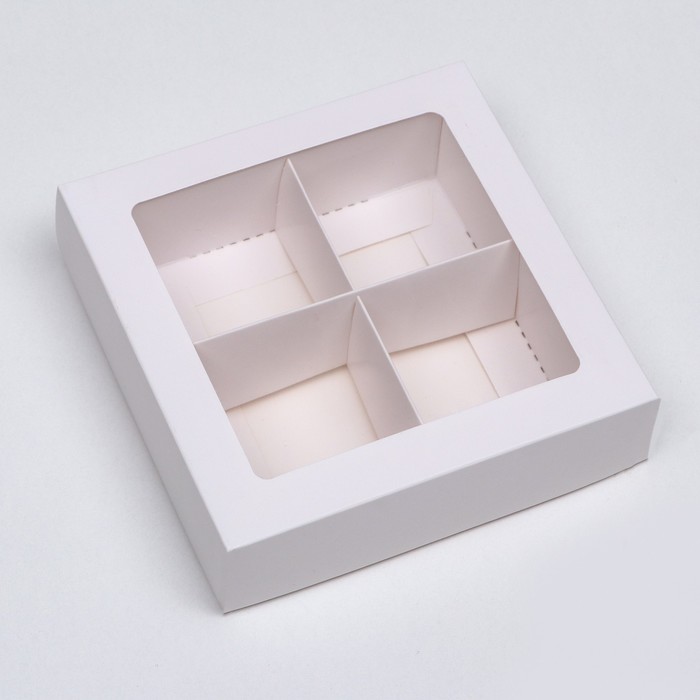Коробка для конфет белая с окном 12,6*12,6*3,5см (4)