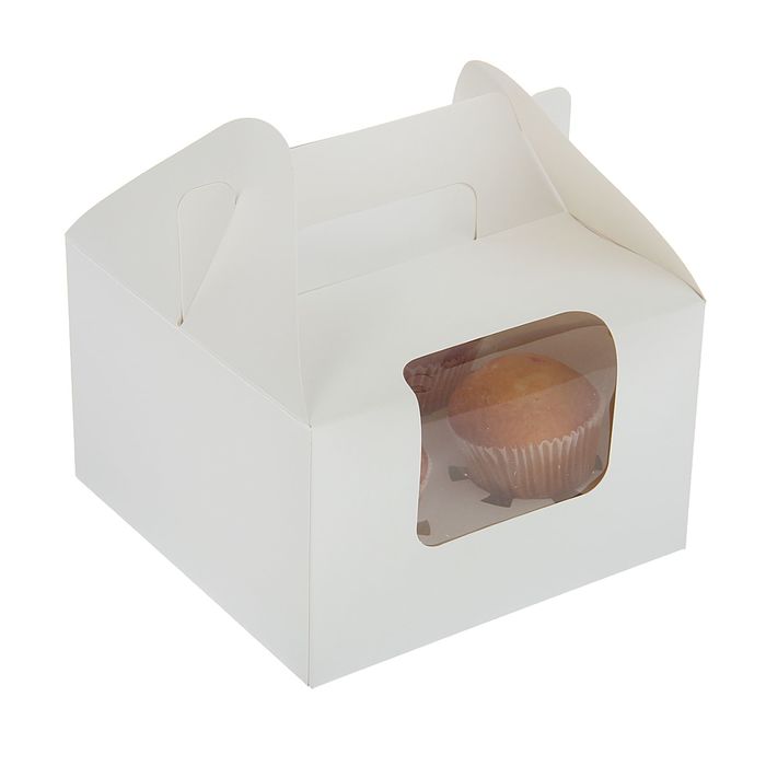 Коробка на 4 капкейка белая с ручками