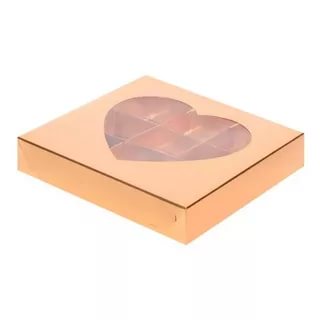 Коробка для конфет золото с окном сердце 16 см*16 см*3 см (9)