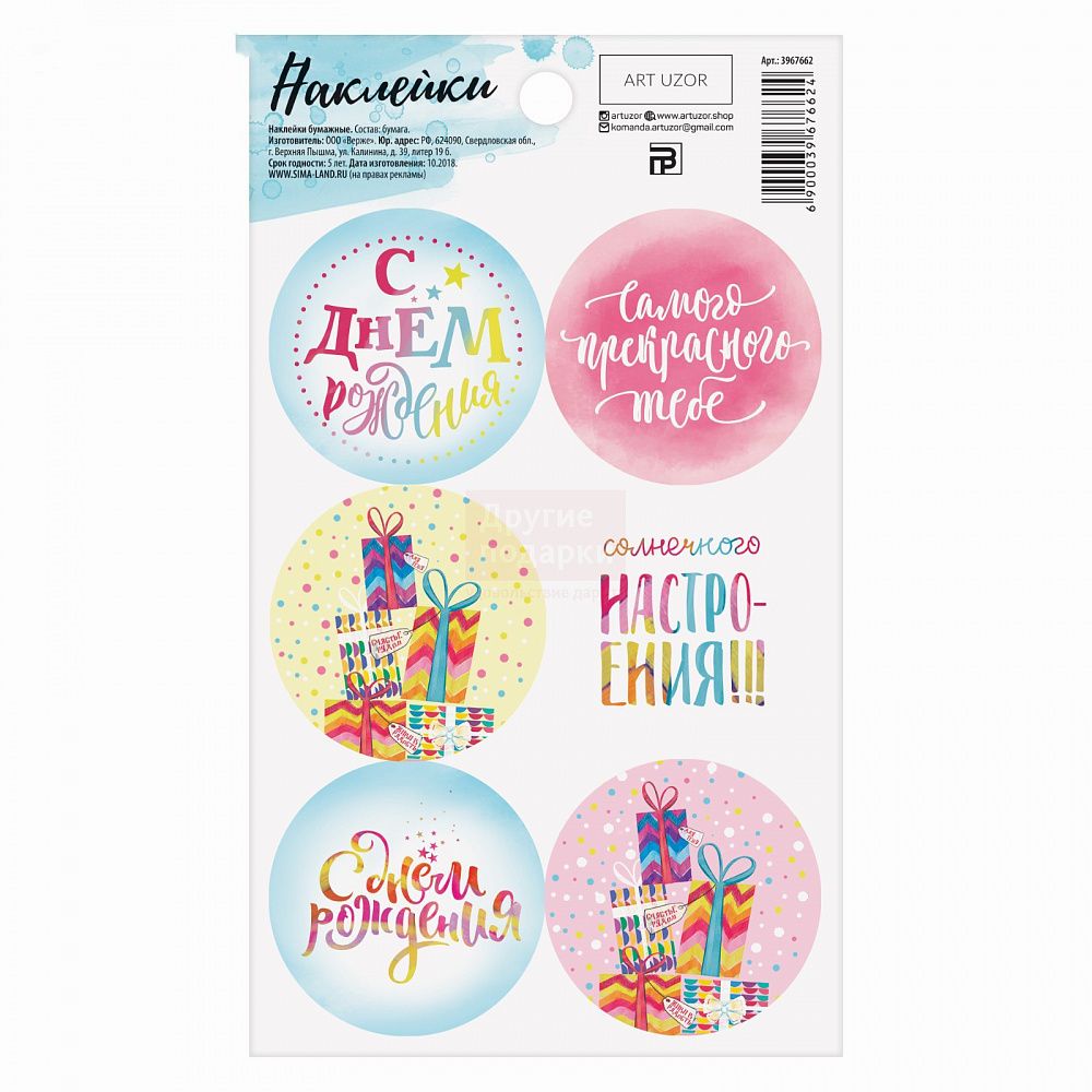 Наклейки на подарки «День рождения», 9 × 16 см