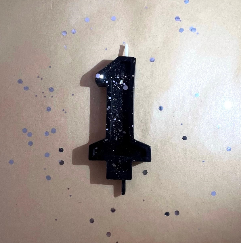 Свеча для торта восковая "Гламур", "Цифра 1" черная с серебром