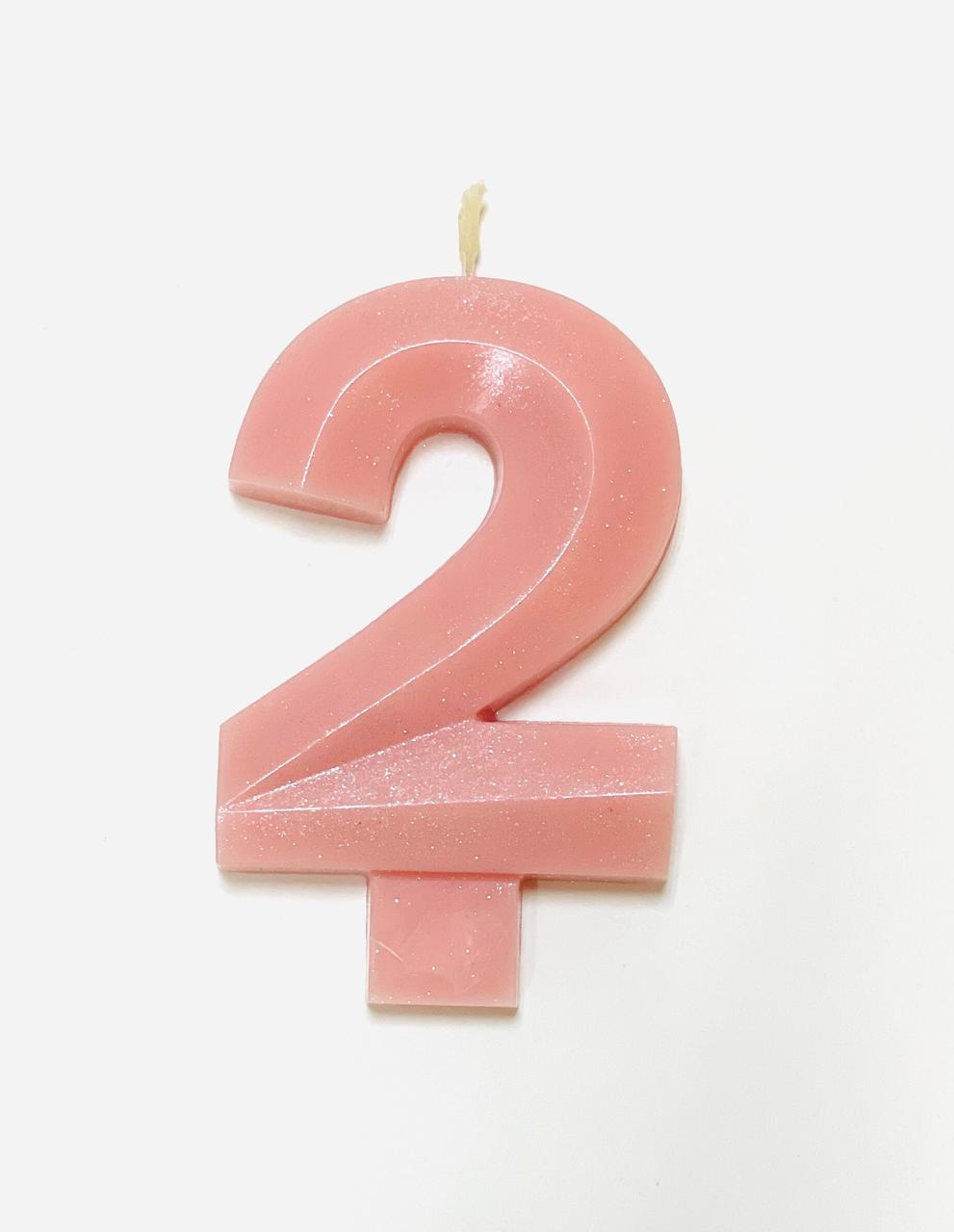 Свеча для торта восковая "Грани", "Цифра 2", розовый перламутр