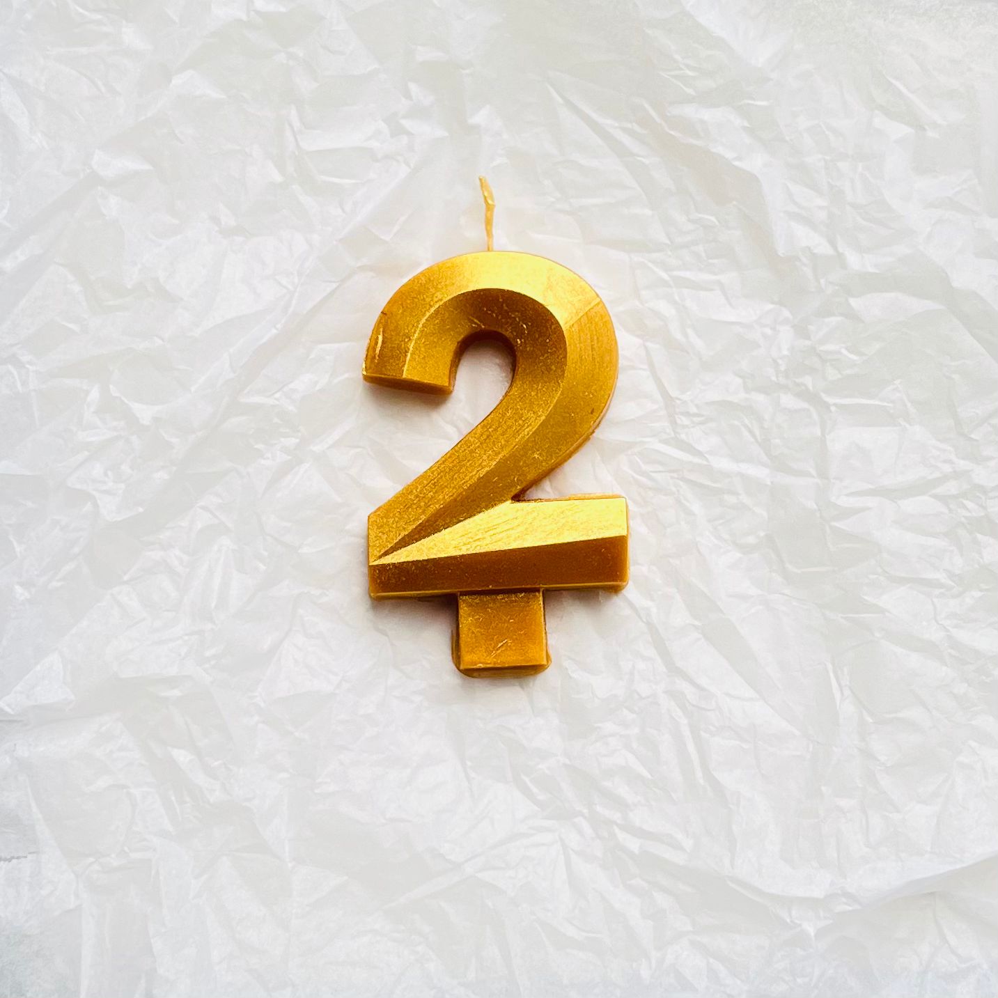 Свеча для торта восковая "Грани", "Цифра 2", золото