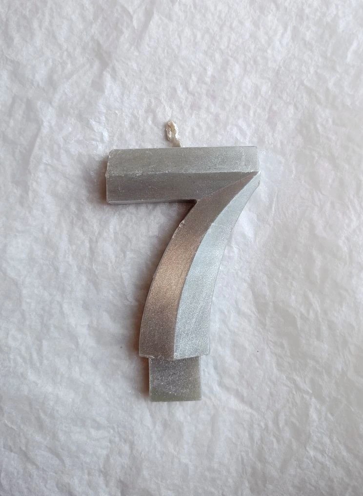 Свеча для торта восковая "Грани", "Цифра 7", серебро